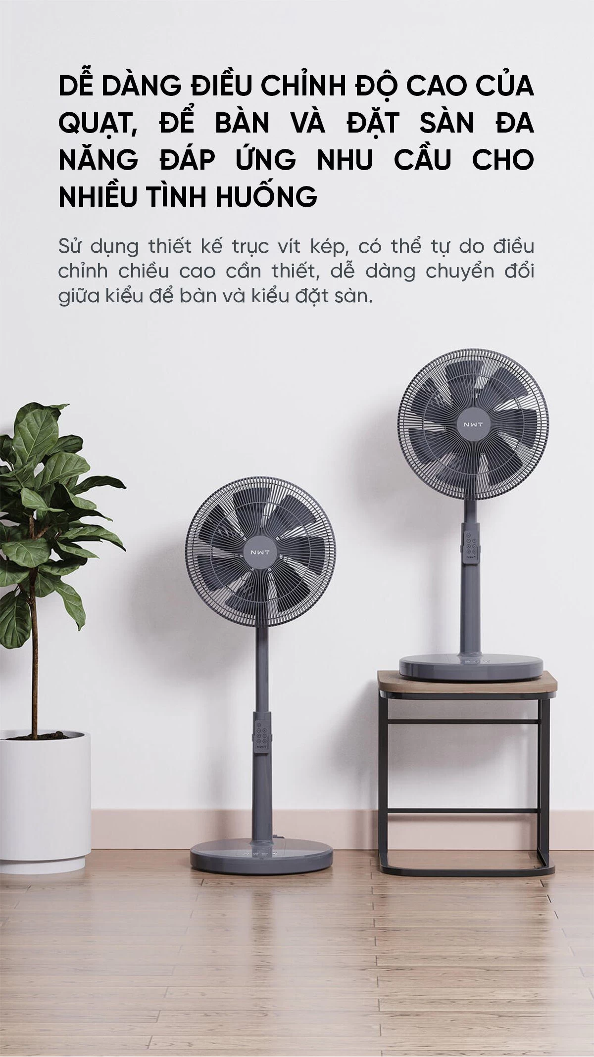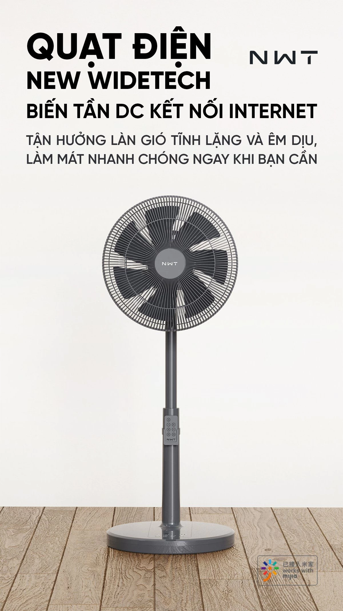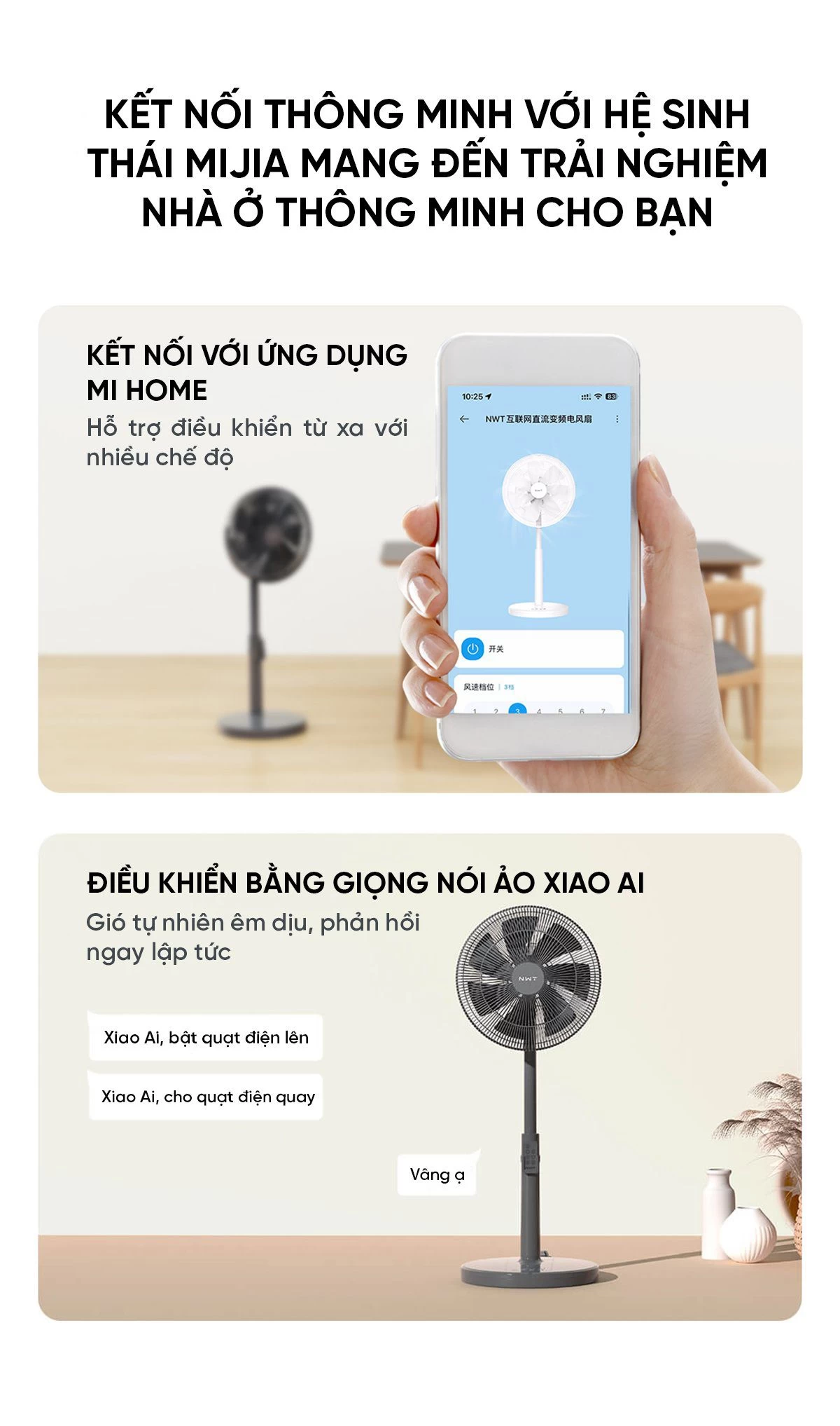 Quạt Cây Thông Minh Kết Nối App Mihome Xiaomi New Widetech Màu Trắng