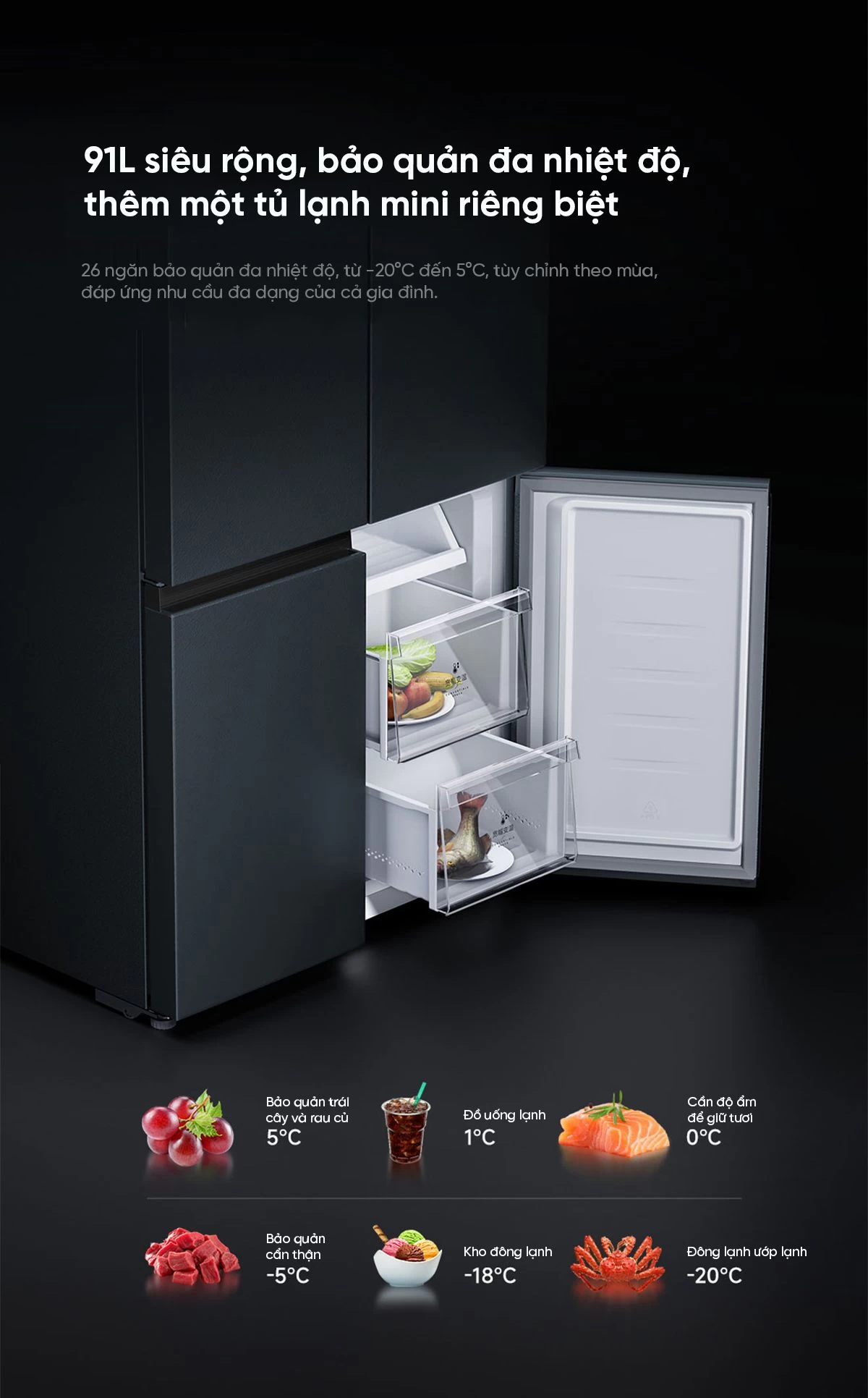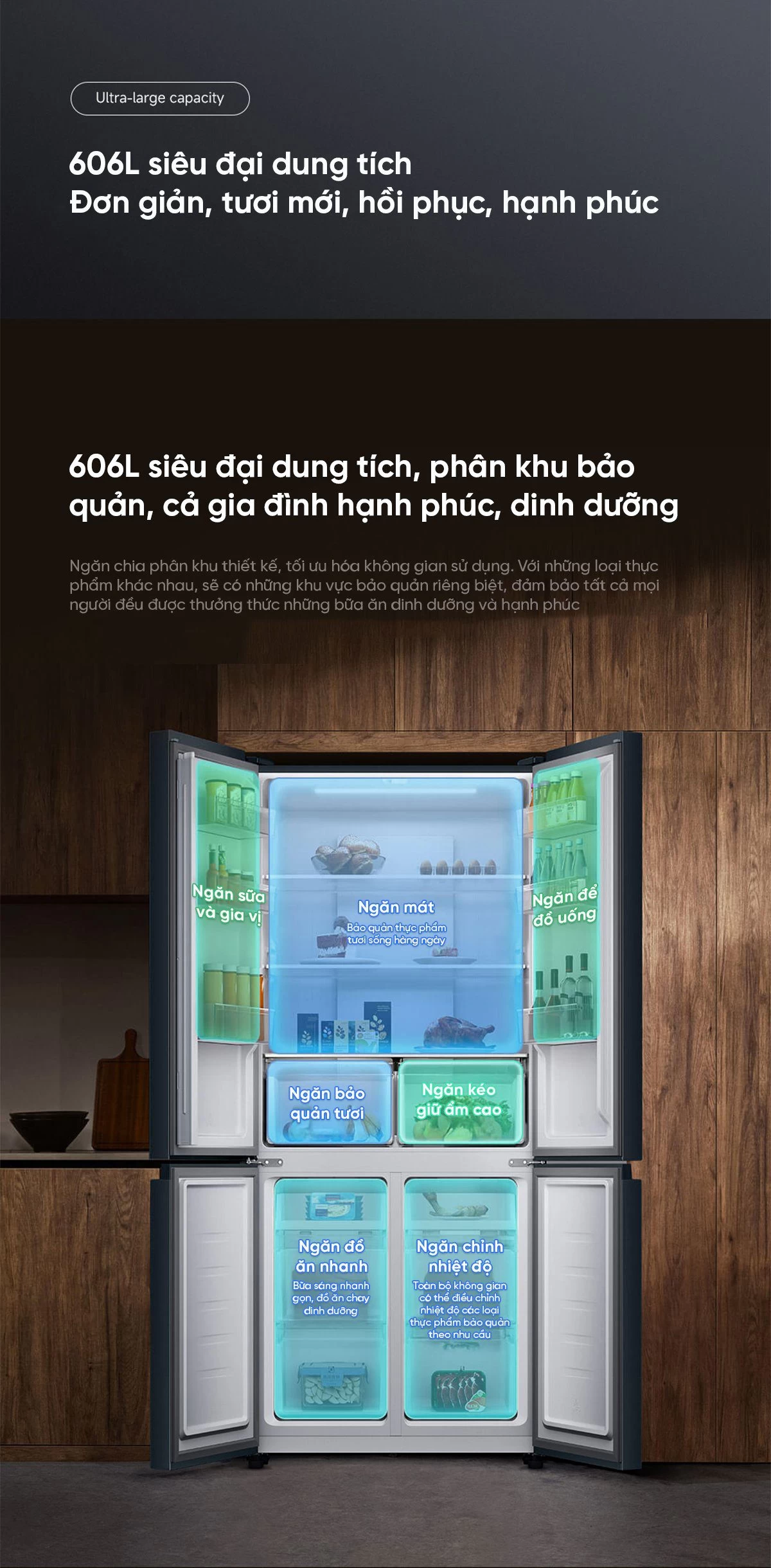Tủ lạnh Xiaomi Mijia 606L, 4 cánh, ion khử khuẩn, cấp đông nhanh